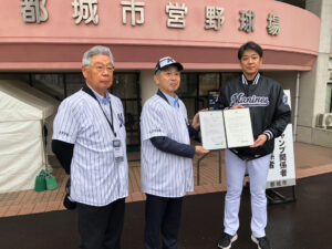 「千葉ロッテマリーンズかもめ会」は、サブロー監督新体制の発足および一軍キャンプ地の変更(宮崎県都城市)に伴い、会の代表団4名による現地視察と激励を実施いたしました。(2/5–2/6)